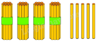 Nhìn hình ta có: 4 bó đũa và 5 chiếc đũa.