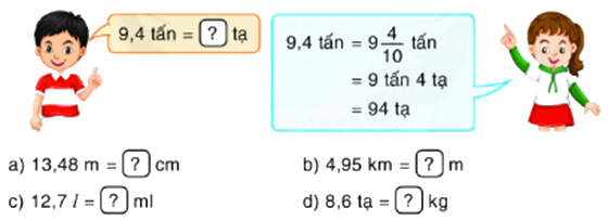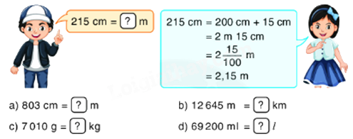 Dựa vào mối liên hệ giữa các đơn vị đo độ dài, khối lượng, dung tích để viết các số thập phân thành các số đo dưới dạng hỗn số thích hợp, sau đó viết số thích hợp.
