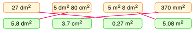 Câu 2. Chọn những cặp số đo có diện tích bằng nhau: