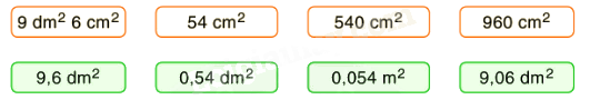 - Dựa vào mối liên hệ giữa đơn vị dm2 và m2: 1 m2 = 100 dm2; 1 dm2 =