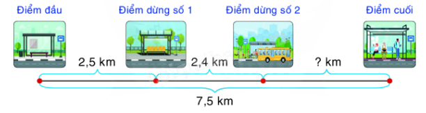 - Tính quãng đường còn phải đi nữa để đến điểm cuối = quãng đường từ điểm đầu đến điểm cuối – quãng đường từ điểm đầu đến điểm dừng số 2.