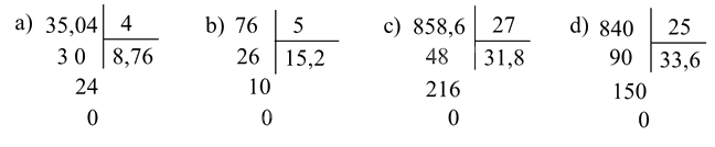 b, d) Khi chia một số tự nhiên cho một số tự nhiên mà còn dư, ta tiếp tục chia như sau: