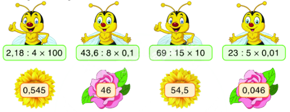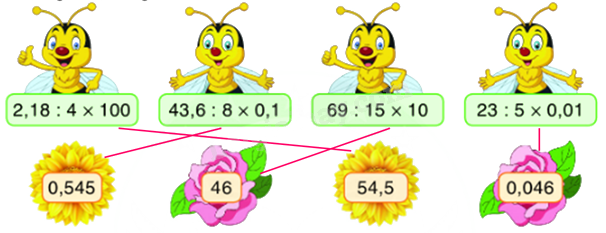 Tính giá trị của mỗi phép tính ở con ong sau đó nối với kết quả tương ứng.