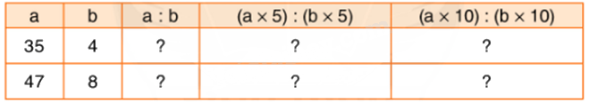 Câu 3. Tính rồi so sánh giá trị của a : b; (a × 5) : (b × 5) và (a × 10) : (b × 10).