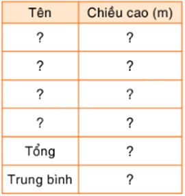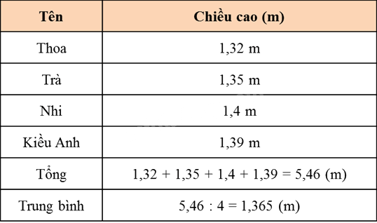 Câu 4. Em hỏi số chiều cao của bốn bạn trong tổ (theo đơn vị đo là mét), rồi tính xem trung bình mỗi bạn cao bao nhiêu mét.