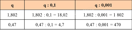 Muốn chia một số thập phân cho 0,1; 0,01; 0,001; ... ta chỉ việc dời dấu phẩy của số đó tương ứng sang bên phải 1, 2, 3, ... chữ số.