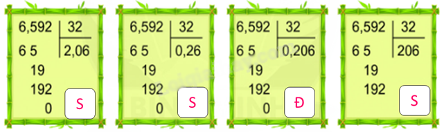 Thực hiện lần lượt các phép tính nếu đúng ghi Đ, nếu sai ghi S.