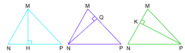 Câu 1. Nêu tên đáy và đường cao tương ứng của mỗi hình tam giác MNP sau: