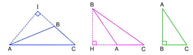 - Hình tam giác ABC: Đáy là BC, đường cao tương ứng là AI.