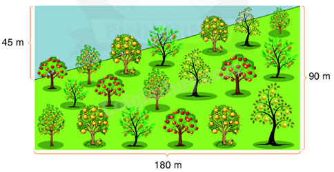 - Tìm diện tích phần đất trồng cây ăn quả = diện tích khu vườn – diện tích phần đất hình tam giác