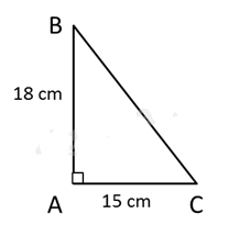 b) Cho hình tam giác ABC có góc đỉnh A là góc vuông và AB = 18 cm, AC = 15 cm. Tính diện tích tam giác ABC.