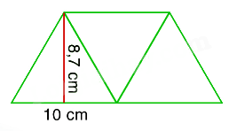 Câu 2. Một mảnh bìa hình thang được ghép bởi 3 mảnh bìa hình tam giác đều bằng nhau, có độ dài cạnh đáy bằng 10 cm, chiều cao bằng 8,7 cm. Tính diện tích mảnh bìa hình thang đó.