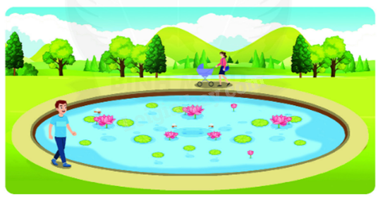 - Chu vi hồ = chu vi hình tròn.