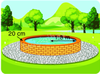 Câu 3. Một cái giếng làng dạng hình tròn có bán kính trong lòng giếng bằng 1,8 m. Xung quanh giếng người ta xây thành giếng như hình bên.