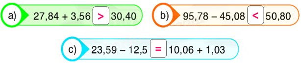 Thực hiện phép tính ở 2 vế rồi điền dấu thích hợp.