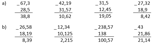 - Viết dấu phẩy ở hiệu thẳng cột với các dấu phẩy của số bị trừ và số trừ.