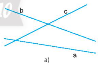 b) Điểm M thuộc hai đường thẳng a và b nhưng không thuộc đường thẳng c.