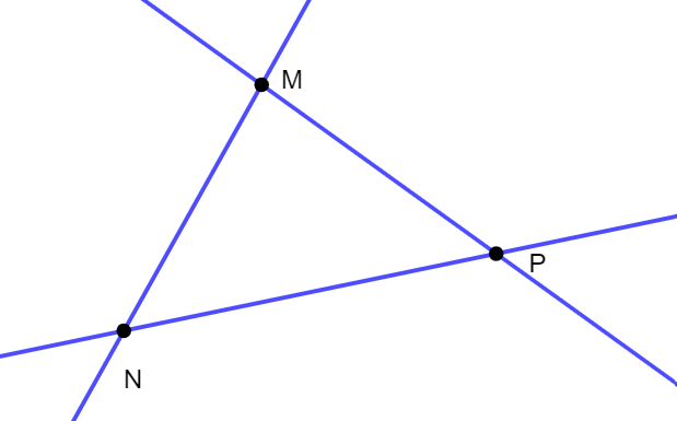 b) Vẽ các đường thẳng đi qua hai trong ba điểm M, N, P cho cho trước, ta làm như sau: