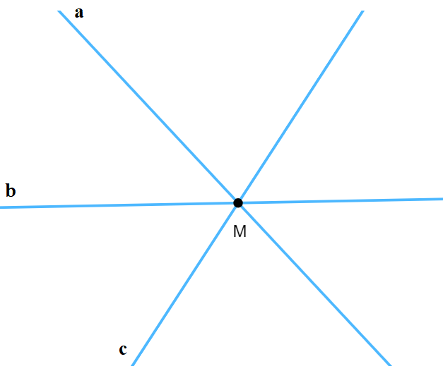 c) Điểm M nằm trên cả ba đường thẳng a, b và c.