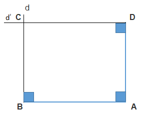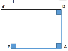 Bước 2. Dùng êke và thước thẳng, kẻ đường thẳng d đi qua D và vuông góc với AD, kẻ đường thẳng d’ đi qua B và vuông góc với AB.