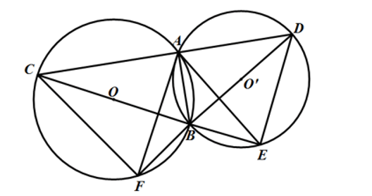 Bài 1: Cho hai đường tròn (O; R) và (O’; R’) cắt nhau tại A và B . Vẽ cát tuyến CAD vuông góc với AB. Tia CB cắt (O’) tại E, tia BD cắt (O) tại F. Chứng minh rằng: