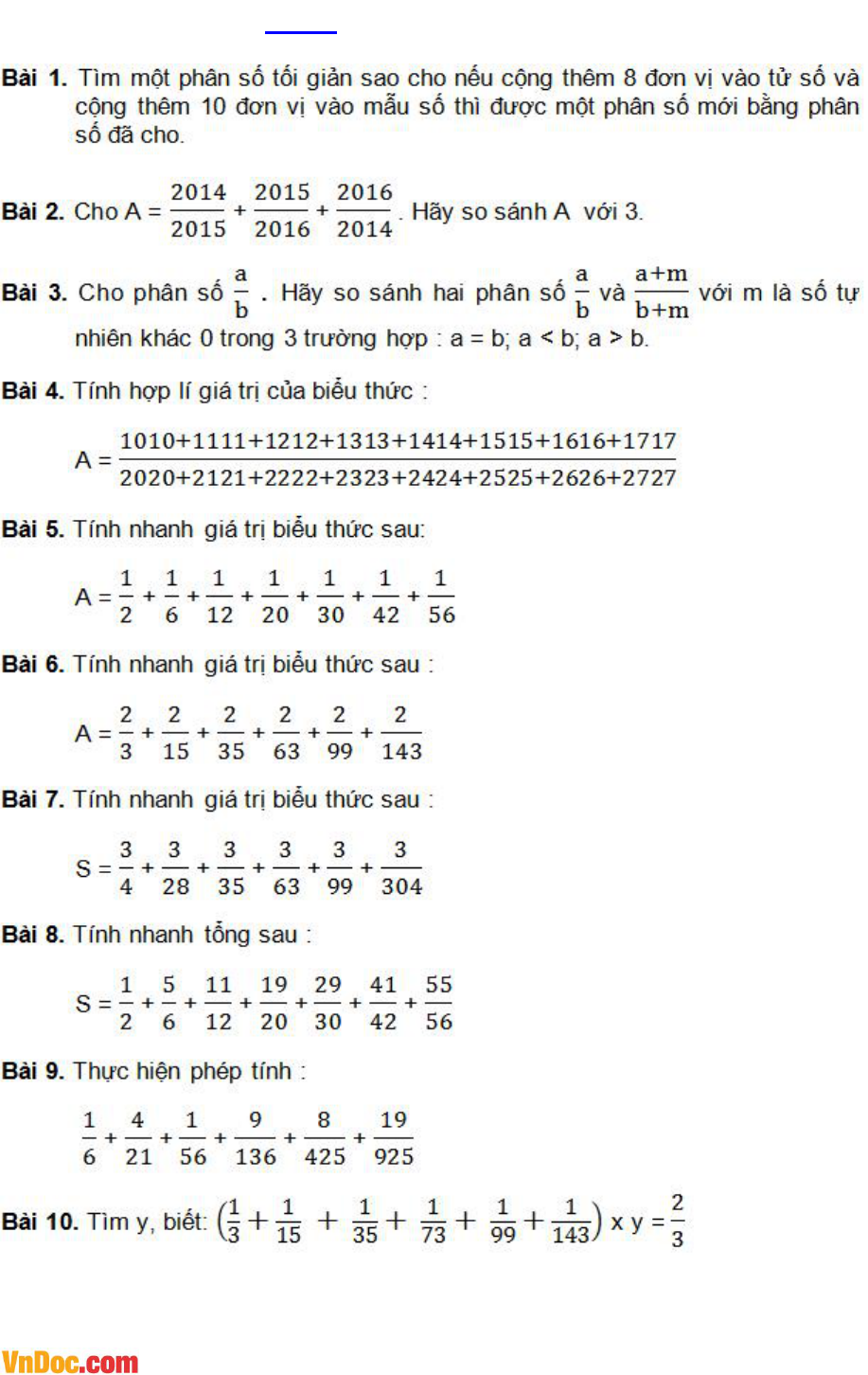 Toán nâng cao lớp 5: Dạng phân số, hỗn số - Đề 2