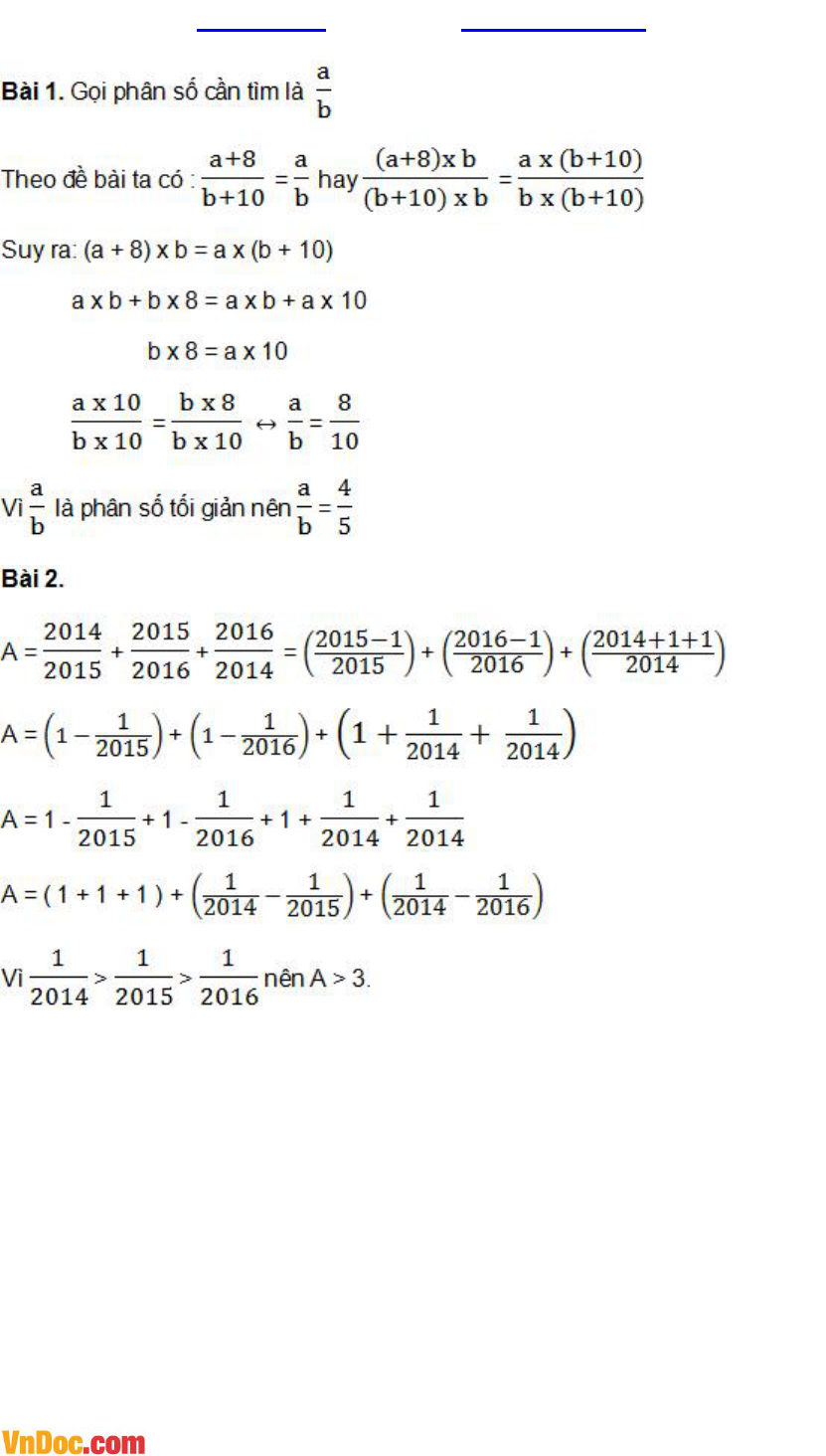 Những dạng Toán hay và khó lớp 5 - Dạng phân số, hỗn số bao gồm 10 câu hỏi có đáp án chi tiết là tài liệu tham khảo cho các em học sinh khá giỏi củng cố kiến thức, chuẩn bị cho các bài thi học kì 1, bài thi học kì 2 và thi học sinh giỏi Toán lớp 5.