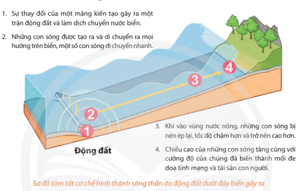 - Nguyên nhân hình thành sóng thần: chủ yếu do động đất, ngoài ra còn do núi lửa phun trào, lở đất và các vụ nổ dưới đáy biển...