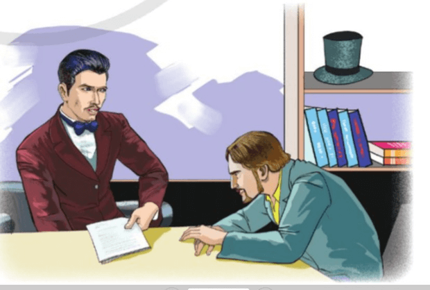 Câu chuyện kể về vụ phá sản của thám tử Sherlock Holmes, tìm một người tên En-giô. Đến hôm làm lễ ở nhà thờ, En-giô đến đón Me-ri và mẹ nhưng vì sợ chật nên để họ ngồi trên một chiếc xe ngựa còn En-giô lên một chiếc khác. Tới nơi thì En-giô mất tích. Ông thám từ đã phát hiện ra nhiều điều thú vị. Thám tử thấy được điều đặc biệt trong lá thư mà ông Uyn-đi-banh, là cha dượng của cô Me-ri gửi cho thám tử Hôm. Ông Hôm đã vạch trần được bộ mặt của Uyn-đi-banh, hắn đã lợi dụng sự đồng lõa của vợ và sự cận thị nặng của cô gái, cải trang thành một người đàn ông khác, luôn phải đeo kính màu, đeo râu tóc giả và biến giọng nói thông thường thành giọng nói thì thầm khó nghe.