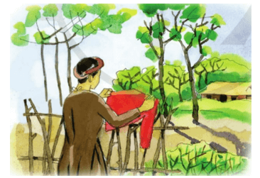 Trong ánh trưa hè trước giậu thưa.”