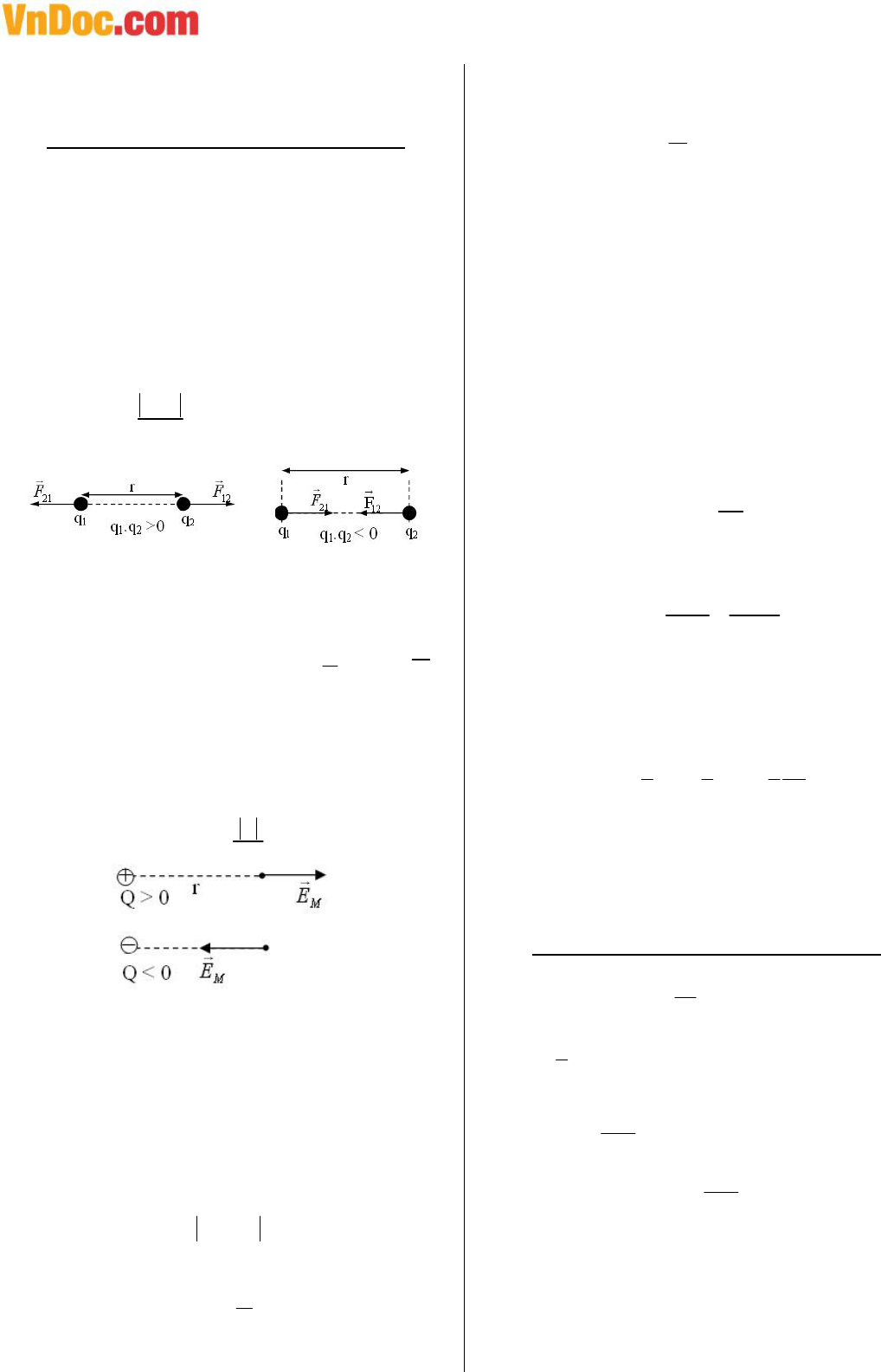 2. EM tại điểm M do một điện tích điểm gây ra có gốc tại M, có phương nằm trên đường thẳng QM, có chiều hướng ra xa Q nếu Q>0, hướng lại gần Q nếu Q<0, có độ lớn.