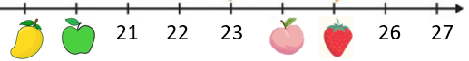 Bài 38: Cho tia số sau: Các số còn thiếu bị che bở các loại quả.