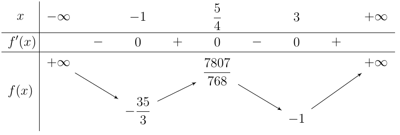 Từ bảng biến thiên ta có và