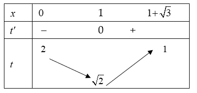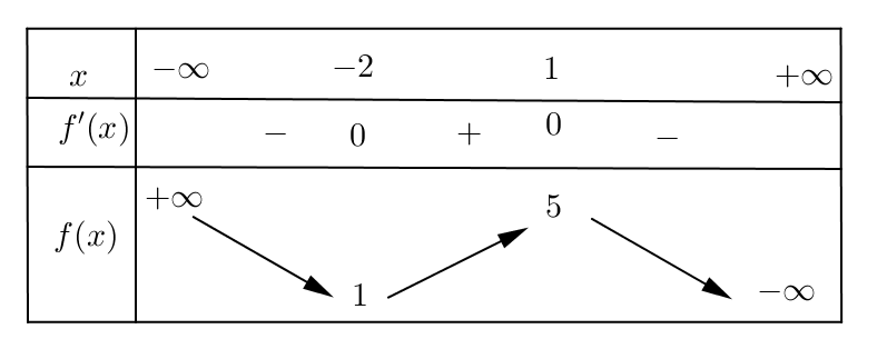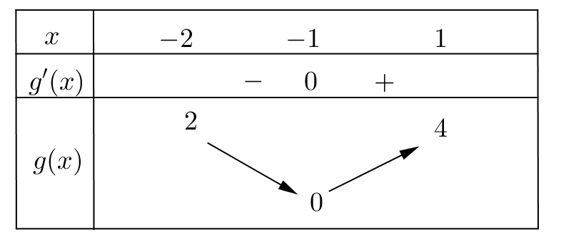 Nhìn bảng biến thiên suy ra điều kiện để xảy ra là:
