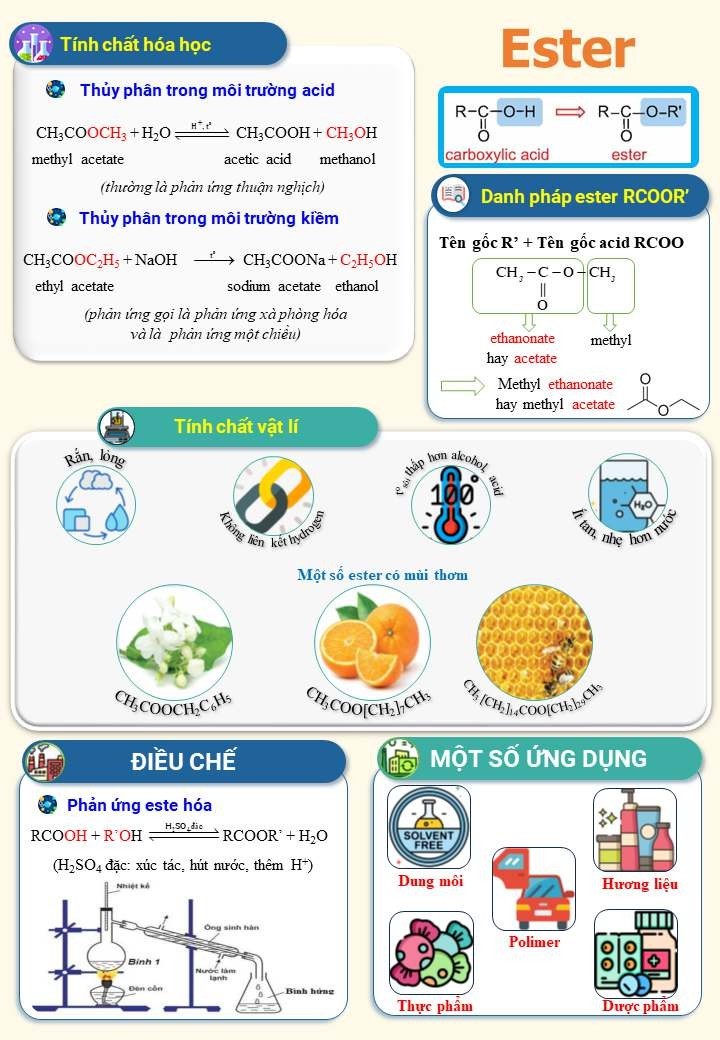 Câu 29: Các ester có nhiều ứng dụng rộng rãi trong đời sống. Chúng là các hợp chất có những tính chất vật lí và tính chất hoá học đặc trưng.