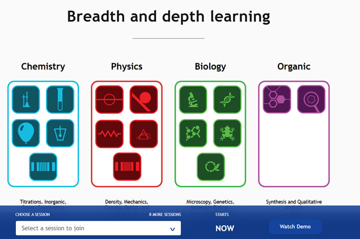 Tích hợp các mô phỏng và thí nghiệm khoa học trực tuyến, hỗ trợ từ trung học cơ sở (THCS) trở lên.