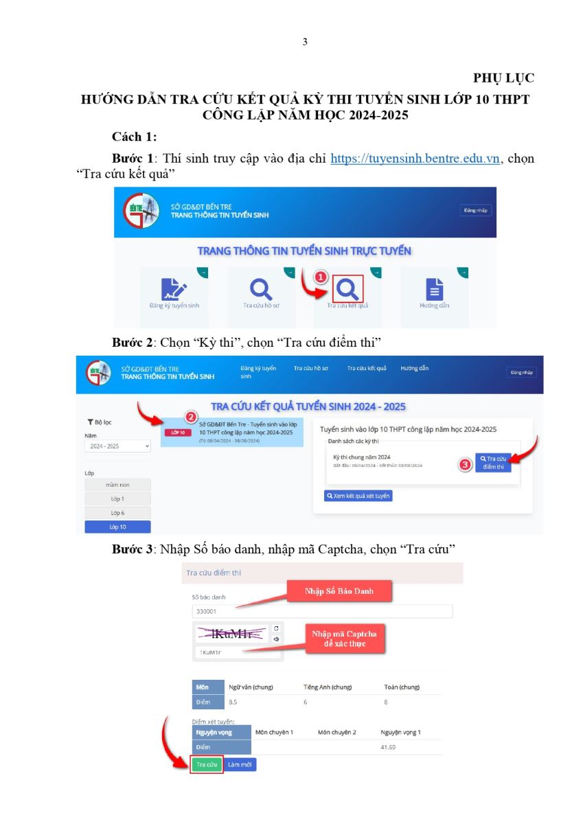 1. Tra điểm thi tuyển sinh lớp 10 Bến Tre 2024