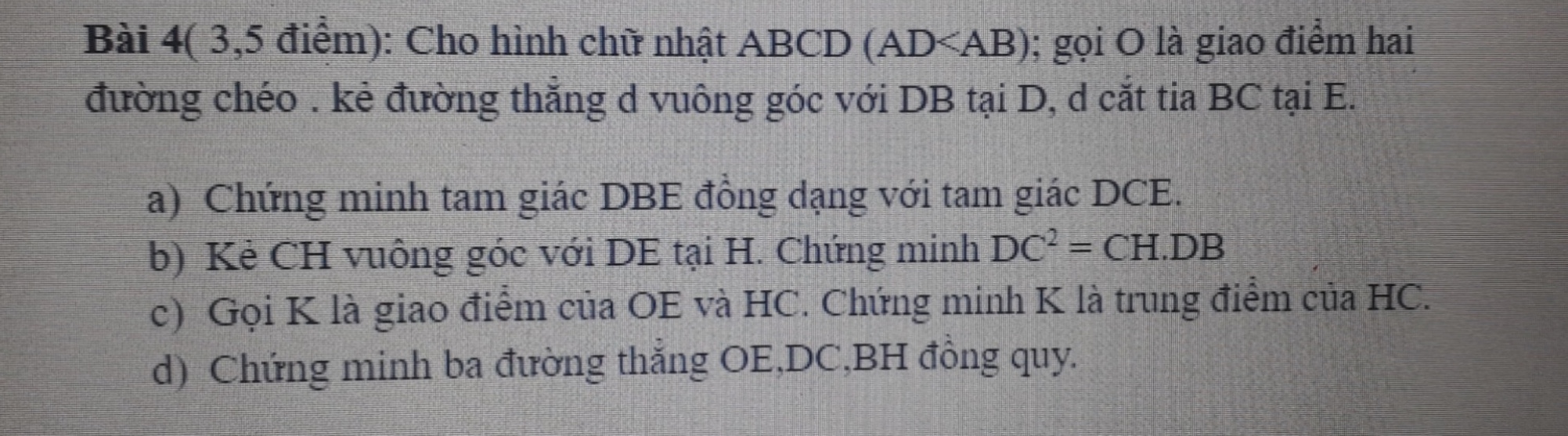 Cho hình chữ nhật ABCD (AD < AB), O là giao điểm hai đường chéo