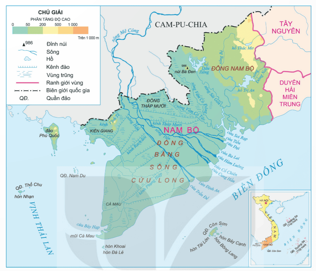 Quan sát lược đồ sau và cho biết Khu vực Nam Bộ nước ta tiếp giáp với quốc gia nào?