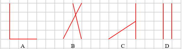Trong các hình sau, hình nào biểu thị hai đường thẳng vuông góc?