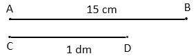 Đoạn thẳng AB dài 15 cm, đoạn thẳng CD dài 1 dm. Đoạn thẳng AB dài hơn đoạn thẳng CD là: