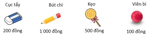 Trong các đồ vật trên chỉ có viên bi có giá tiền ít hơn 200 đồng.