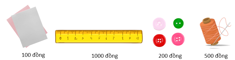 Hải có 200 đồng. Hải có thể mua 1 đồ vật nào sau đây cho vừa đủ số tiền?