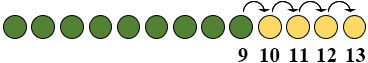 Đếm thêm 4 bắt đầu từ 9: