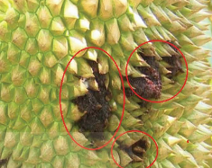 Quan sát ảnh sau, xác định loại sâu, bệnh hại cây sầu riêng