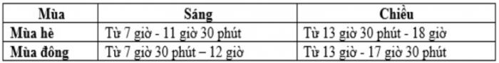Cho biết lịch học theo mùa của một trường cấp 3 ở Hà Nội như sau: