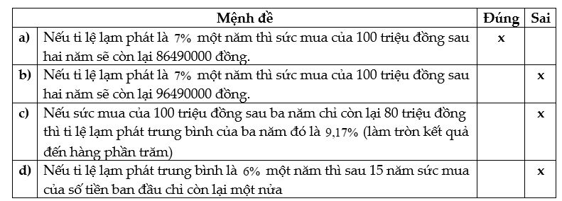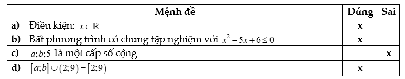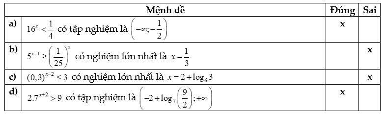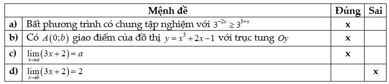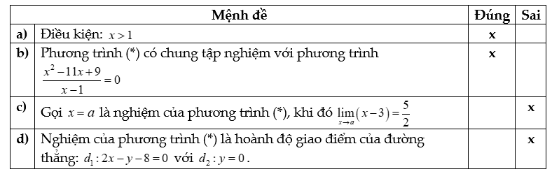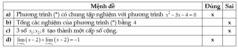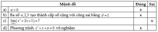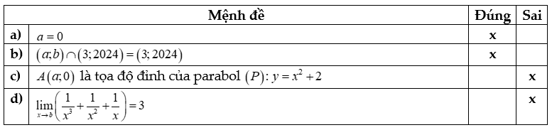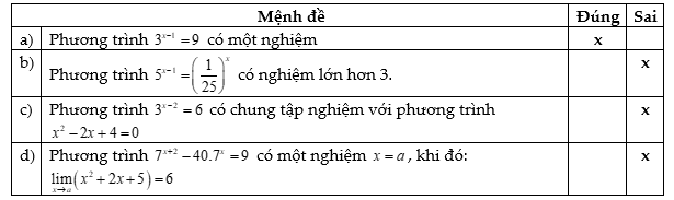 b) Phương trình luôn có nghiệm với mọi . Sai||Đúng
