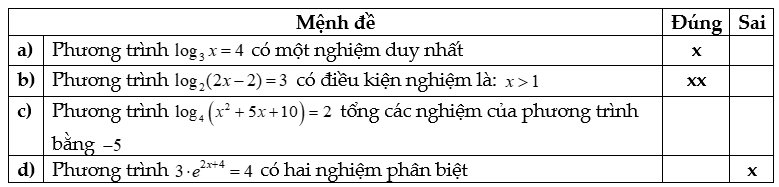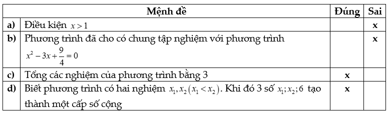 Cho phương trình . Các mệnh đề sau đúng hay sai?