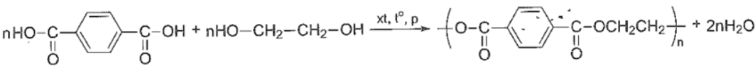 Nhựa PET được điều chế bằng phản ứng trùng ngưng terephtalic acid với ethylene glycol