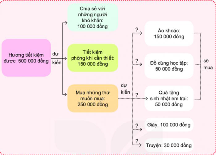 Quan sát bảng chi tiêu của Hương và cho biết Hương đã dự kiến làm những việc gì với số tiền 500 000đ?
